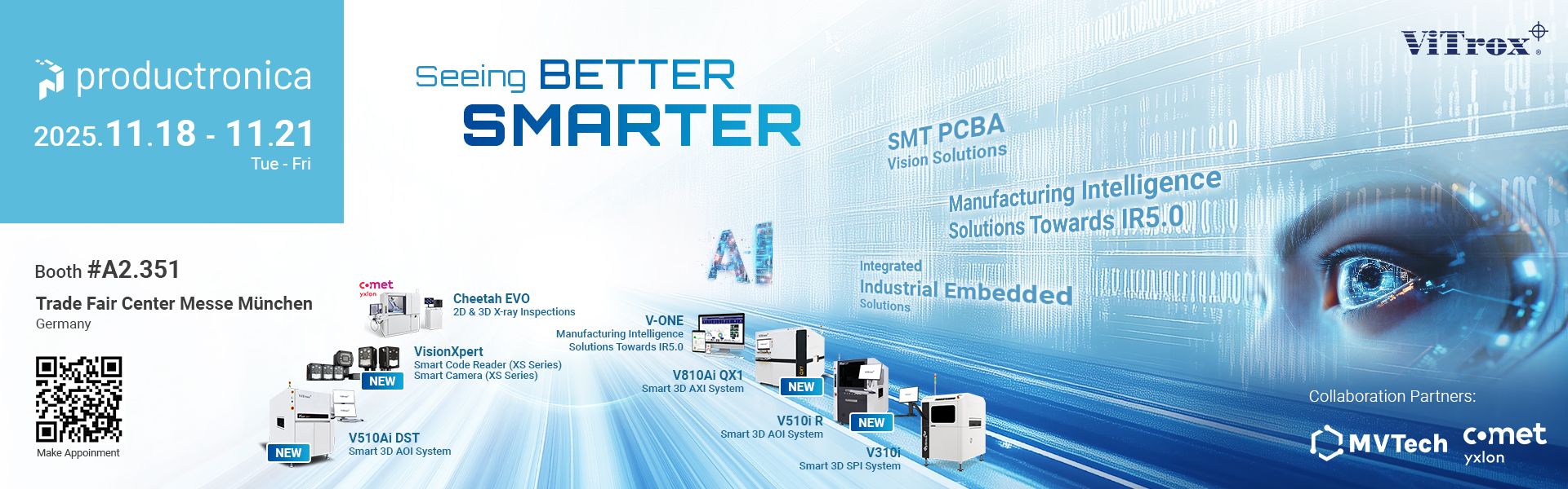 ViTrox aims to be the World’s Most Trusted Technology Company in providing innovative, advanced, and cost-effective automated Machine Vision Inspection Solutions for the semiconductor and electronics packaging industries, is excited to announce its participation in Productronica 2025, taking place at the Trade Fair Center Messe München, Munich, Germany (Booth #A2.351), from 18th to 21st November 2025.