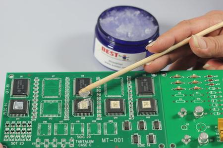 The HeatShieldGel™ a water-based gel that protects components from heat. This revolutionary product, made from a water-based gel, easily goes on to parts neighboring the device to be reworked or on heat-sensitive devices such as ceramic capacitors that will be subject to reflow. After the rework or reflow process has been completed, the gel can be simply cleaned off with water. It is highly flexible in that it can be used on boards with tightly-spaced components without having to do any cutting or modification of shielding tape or materials.