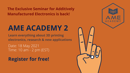 The AME Academy seminars are an industry educational series that upskills and informs professionals on the latest developments and trends in additively manufactured electronics design and manufacturing. The AME Academy’s goal is to create a global community of corporations and individuals who have a shared interest in AME technology, while providing the knowledge and tools necessary to advance its applications and use in industry and research.
