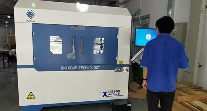 Unicomp Technology AX8200L lamp strip backlight detection equipment adopts more comprehensive function of X-ray image analysis software, including image contrast enhancement and filtering function, measurement function, CNC macro instruction CNC programming function, etc.The LED lamp strip can be automatically judged when the welding is bad, and the NG picture is preset.The radian and length of the gold line can be measured and identified by the software.By presetting NG picture, the bubble size and void proportion can be automatically compared and identified by software.The detection is more accurate and faster.